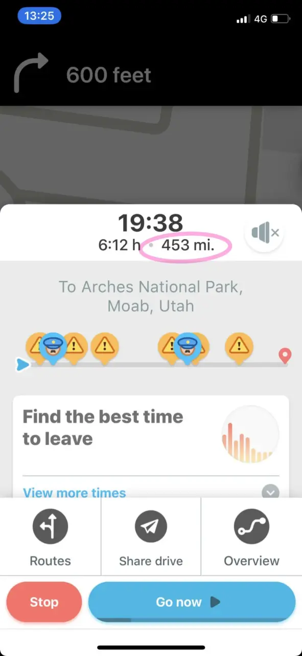 P.S.: Kurzer Nachtrag, die Entfernung zum Arches Nationalpark habe ich ganz vergessen zu posten. Es folgen zwei Screenshots: