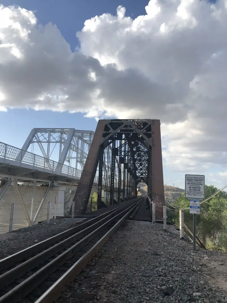 Wir zumzum Gateway-Park gefahren. Das ist eine TripAdvisor-Empfehlung. Hier angekommen, wurde uns sofort wieder bewusst, dass ein Park in Deutschland was anderes ist, zumindest anders geplant wird. Der Park mit Badestelle im Colorado-River ist schon ganz nett, liegt aber direkt an, bzw. unter der Ocean-to-Ocean-Bridge und wenn hier ein Zug (und die sind schnell mal eine Meile lang) rüberappelt, dann ist es vorbei mit Erholung. Außerdem befindet sich direkt neben dieser historischen Brücke eine Autobrücke, die obwohl nur einspurig doch Lärm macht. Dazu haben wir eine kleine Kläranlage(!) in unmittelbarer Nähe gesehen, alles nicht unbedingt anheimelnd. Man kann hier sitzen, aber der ruheverwöhnte Europäer, wird es nicht lange aushalten, wir verließen diesen Ort auch bald wieder.