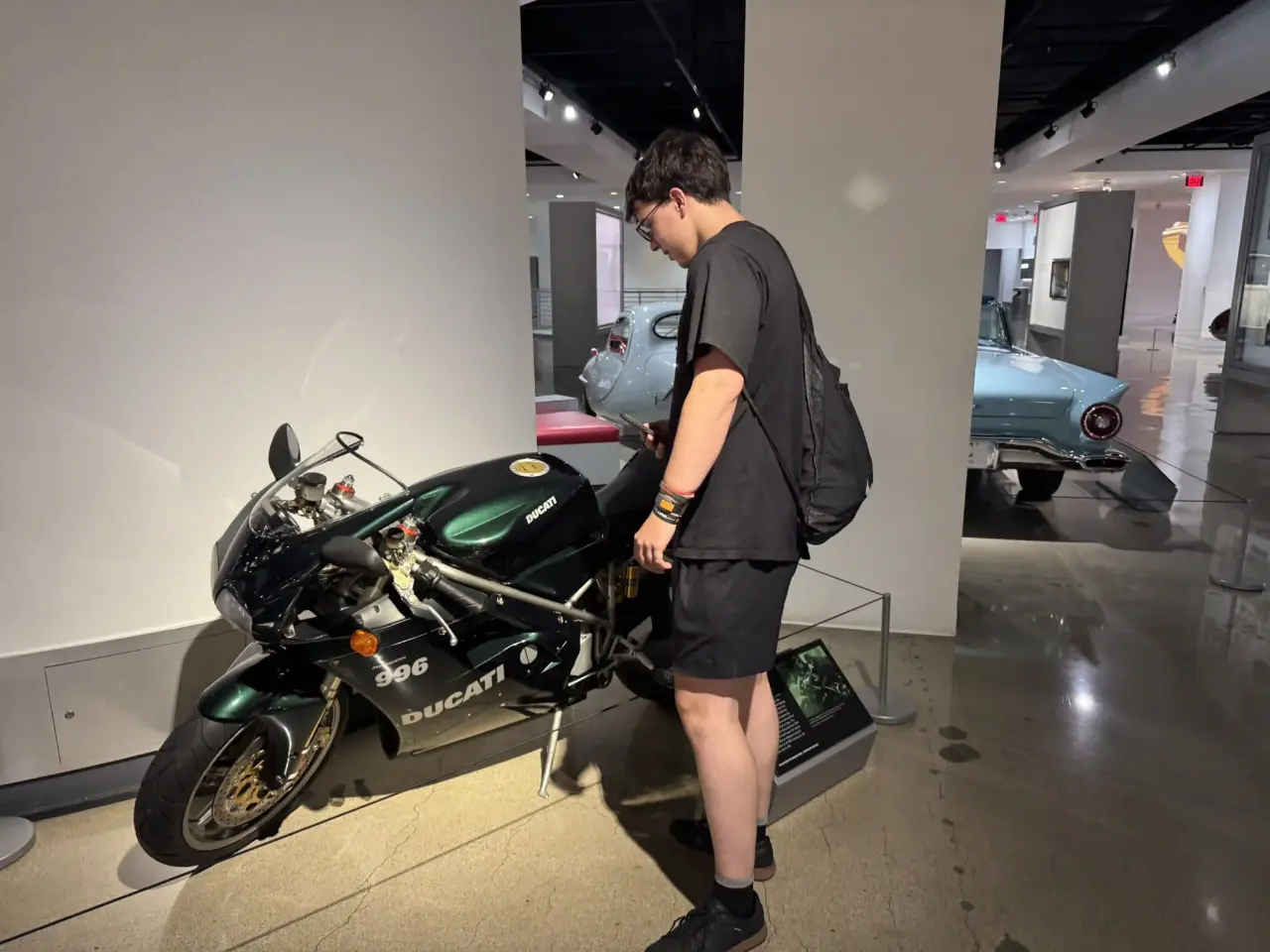 Nun sind amerikanische Museen manchmal echt enttäuschend, dieses hier hier definitiv nicht. Der Eintritt ist krass, es gibt zwei verschiedene Tickets. Die normale Dauerausstellung Ausstellung, mit Highlights wie Original-Fahrzeugen aus epischen Filmen wie Matrix. Aber auch andere Ausstellungstücke aus der Rennfahrerszene, Fahrzeuge, die historische Meilensteine sind. Das auf drei Etagen, mit guten Erklärungen. Wirklich super aufbereitet, Hier steht Automobile-Geschichte. Das ist die Standard-Ausstellung- Man kann den sog. Vault (= Schatzkammer) dazu buchen. Das haben wir gemacht und waren mit 98.-$ Eintritt dabei. Das ist echt viel Schotter! Aber, hier steht wirklich Automobilgeschichte, die ich mir vom Umfang und der Vielseitigkeit so nie vorgestellt hätte auf einem Fleck sehen zu können. Das schreibt jetzt eine Person, die automäßig so überhaupt nicht in Gefühlsregungen ausbricht. Dieses Museum ist jeden Dollar wert! Was ich hier sehen durfte ist wirklich mehr als überwältigend. Im Vault steht der Vorgänger des Papa-Mobils von Johannes Paul II, neben der Sattrskarosse von Krutschow(!), ja, wirklich das russische Staatsoberhaupt!. Einen Trabbi habe ich gefunden, und daneben eine Ente (Citroën 2CV). C. Und es stehen noch viel mehr Highlights herum. War im Himmel, er konnte das serienmäßig schnellste Motorrad (Kawasaki Ninja H2R) sehen, leider nicht fahren;)
